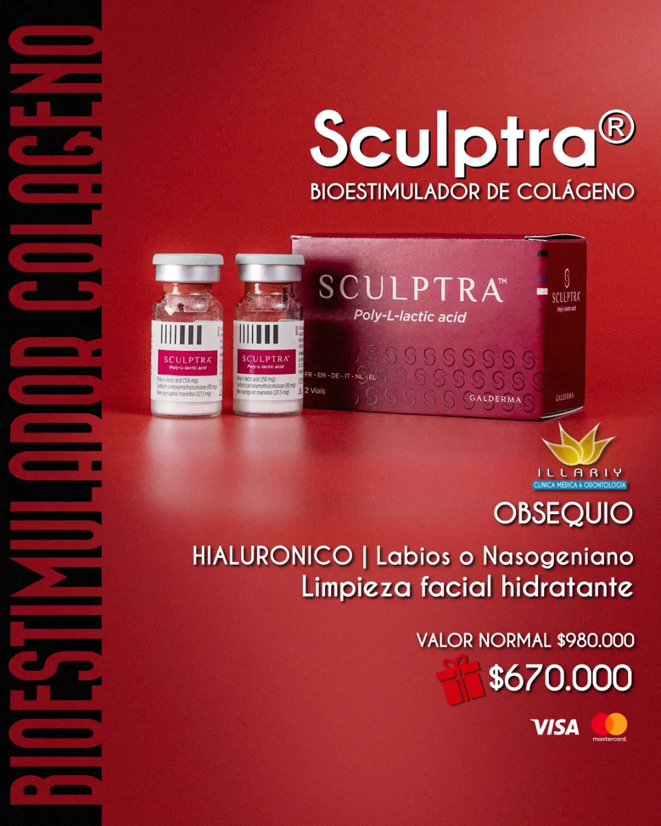 Bioestimulante Sculptra (Rostro) + Hialurónico (Labios o Nasogeniano) + Limpieza Hidratante.